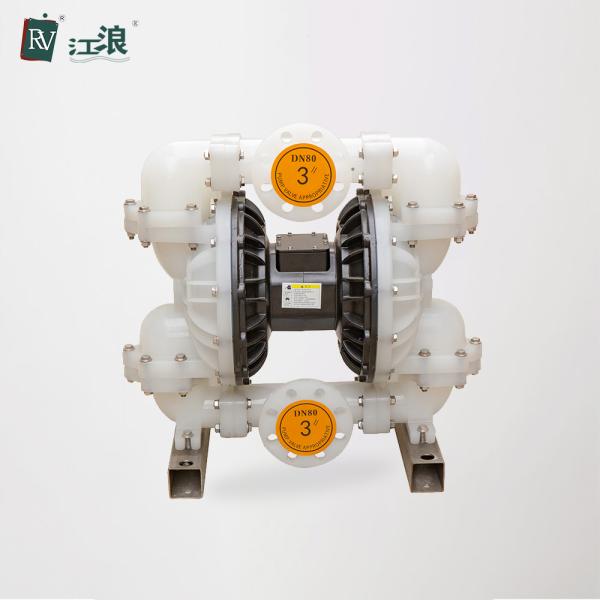 Our Ployprepylene diaphragm pump have totally seven specifications. The sizes for import/export are 1/4", 3/8”, 1/2", 3/4", 1", 1.5", 2", 3". The components which contact with the fluids are usually made of aluminum alloy, nodular cast iron, polypropylene, stainless steel. Depend on the varied applications, and the materials of diaphragm can be , Neoprene, Santoprene, Buna-N, Hytrel, PTFE, so that it can meet the requirements of different fluid mediums.